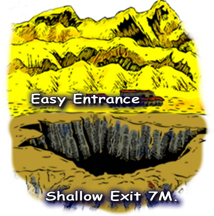 Translated as The Grave of the Girl, Gabr El Bint is south of Dahab and reached by 4-wheel drive or camel safari. The reef walls are colourful here with fantastic examples of Gorgonian Fan corals, amongst others, wherein youll find a multitude of reef fauna including Parrotfish, Trumpet fish, Crocodilefish and stingrays, to name but a few. |