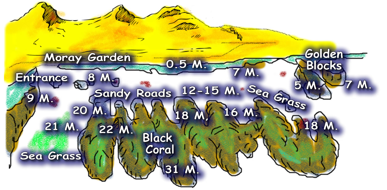 Also at this site at 30 40 metres, suitable only for Tec divers, is the Little Canyon.