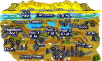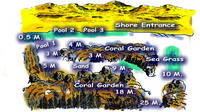 The Canyon is reached from the shore, by swimming over a shallow, sandy lagoon. Soon, you reach The Canyon which can be entered at a depth of around 20 metres. The Canyon is a long, narrow fissure in the coral reef. It is almost closed over at the top, making it an exciting site for cave enthusiasts. You can expect to see Pufferfish, Snappers and maybe, Octopus, amongst other marine life. You exit through a section of The Canyon known as ‘the fishbowl’ at a depth of 12 metres. |