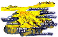 Gebildet aus 4 Riff Platten, Jackson, Woodhouse, Thomas und Tiran, trennt die Tiran Strasse den Golf von Aqaba vom Roten Meer. Die nördlichste und westlichste Seite des Riffs unterliegen starken vorherrschenden Winden aus dem Norden, die mit starken Strömungen gekoppelt sind. |